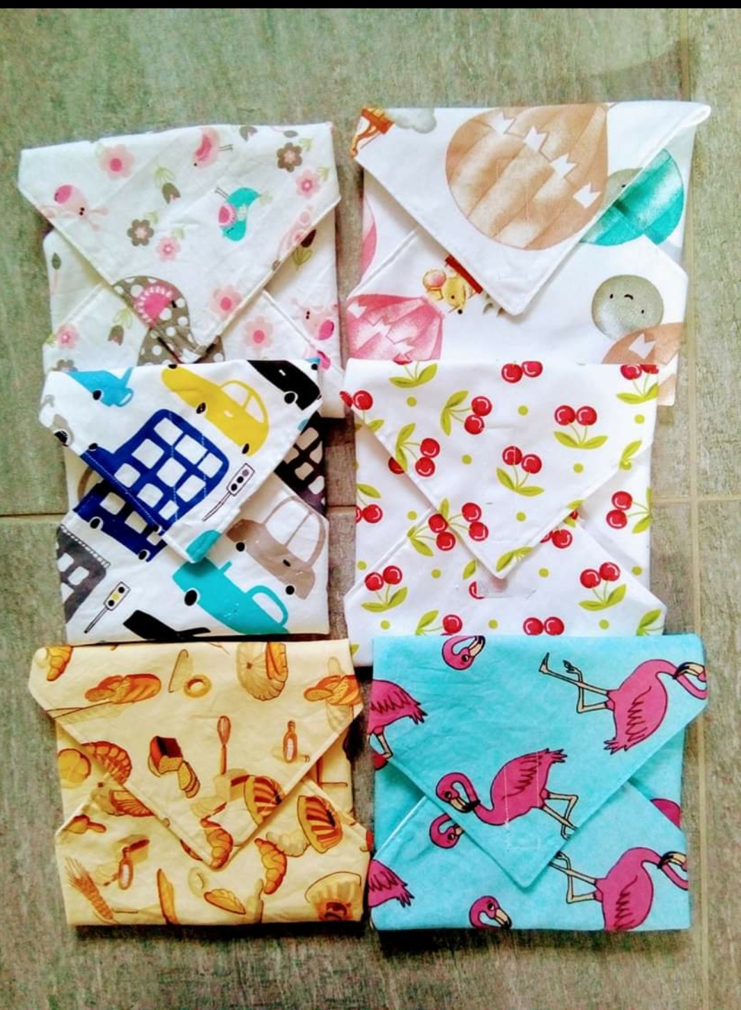 Egyszerű ízléses tépőzáras környezetbarát csomagoló, ami egyben terítőként, alátétként is szolgál. a tépőzárral megfelelő méretre is állítható.